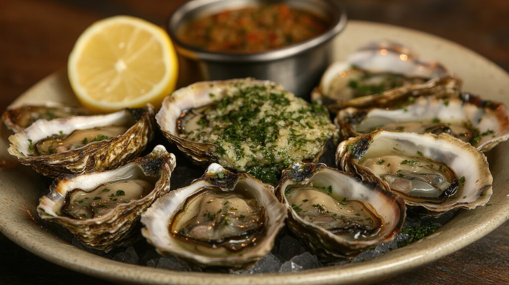 Barbecued Oysters with Champagne Horseradish Granita